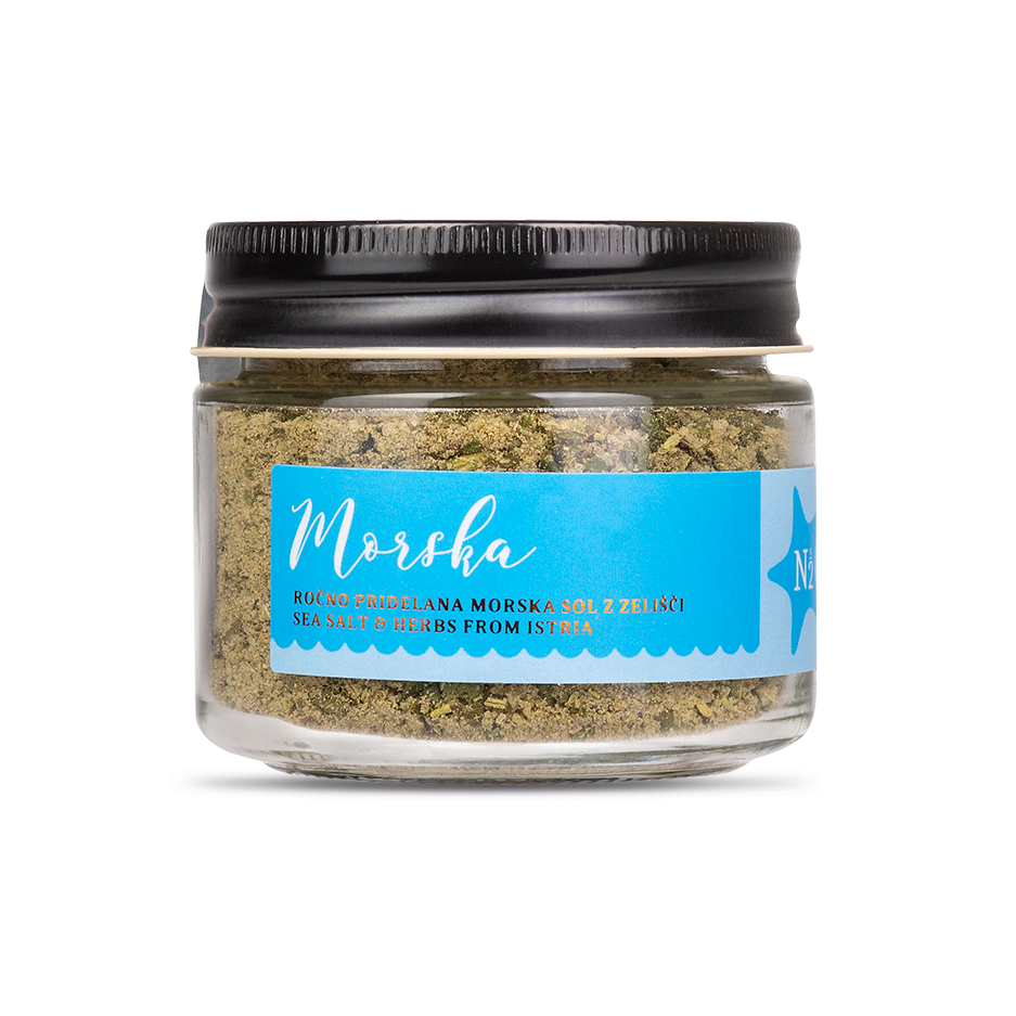 Sale marino fatto a mano con erbe aromatiche, che si abbina a frutti di mare, risotti, carne, pizze e focacce, salse e aggiunge grande gusto a polenta e gnocchi di pane.